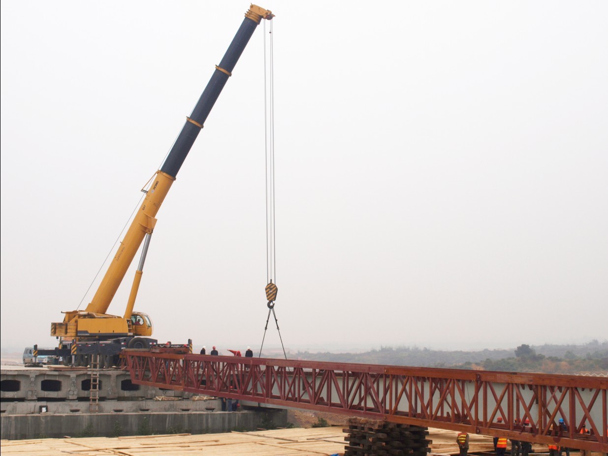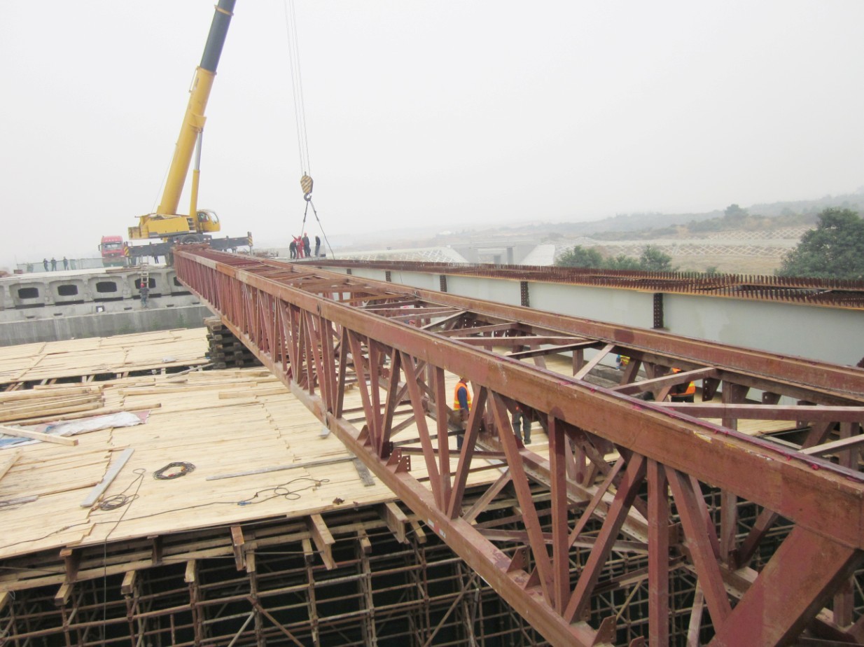 跨越成雅高速公路的成都雙華路(牧華路)遷建成雅互通52米跨度鋼箱橋梁,該工程位于成都雙流縣有著“千年麻羊鄉、現代工業鎮”的黃甲鎮。此工程鋼結構專業工程量達到2000多噸。其中鋼箱梁跨度52米,寬度5.4米,高度2.4米,單個構件重量達162噸。